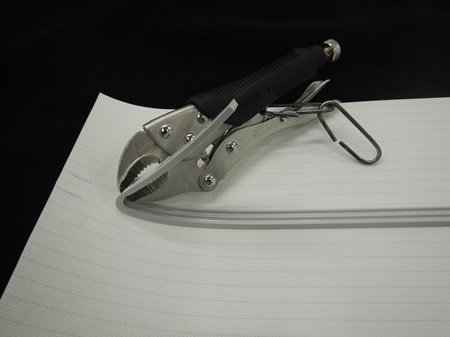 ① 供試品の桟部分をペンチで掴んで捻る。