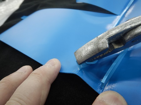 ▼写真③ 【マーキング強度検査OK】 ※加工端部(黒い線)でシートが千切れている