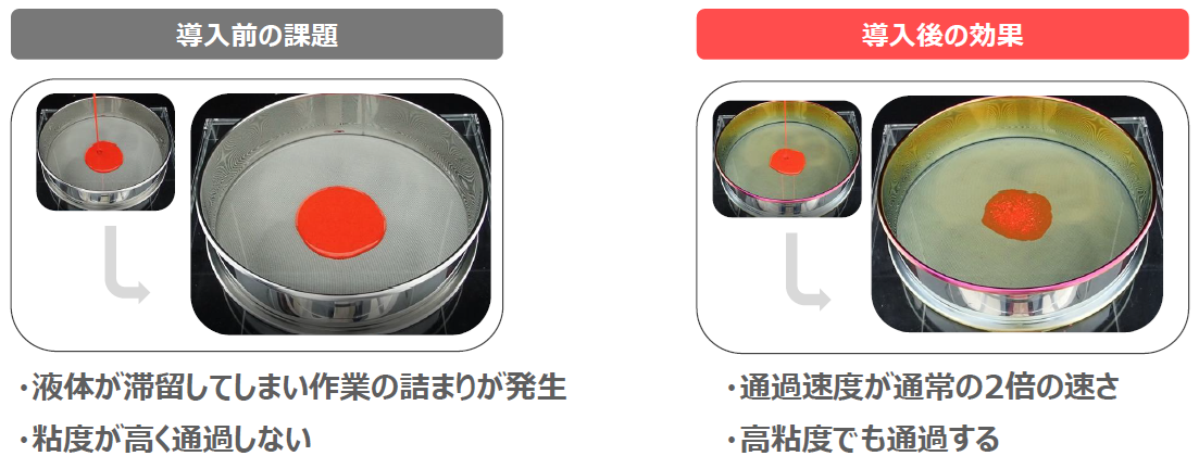目的:粘度の高い液体の通過速度向上