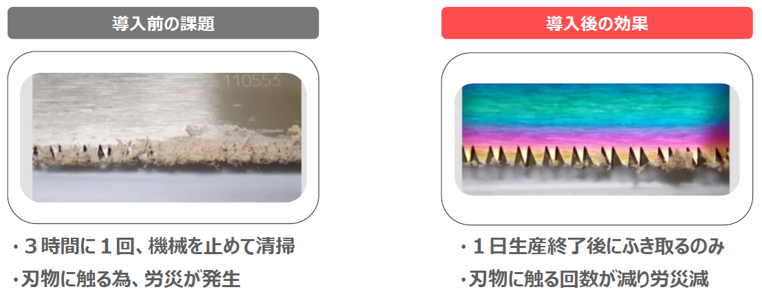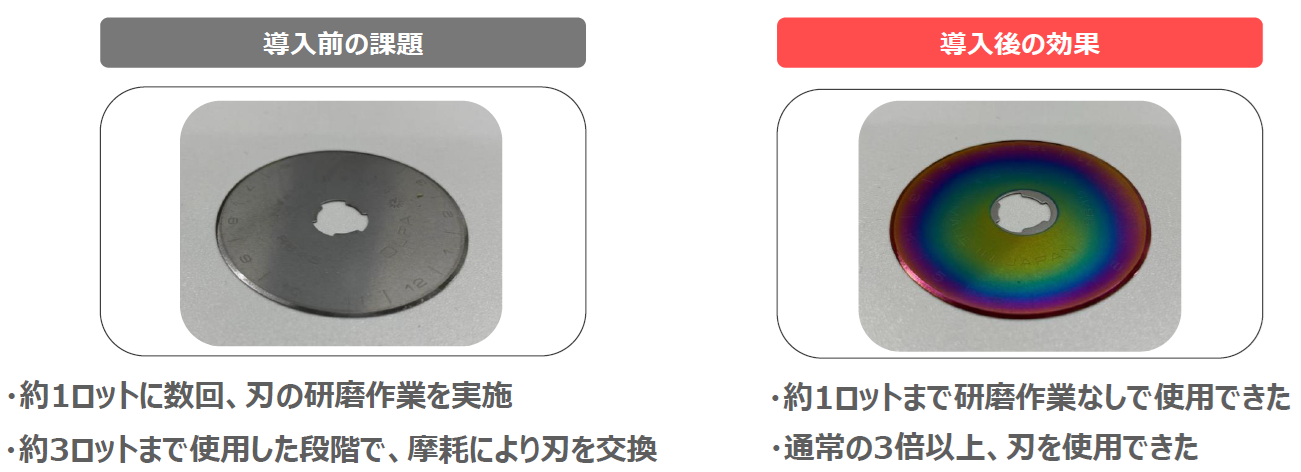 効果:研磨作業頻度の削減・刃物の長寿命化