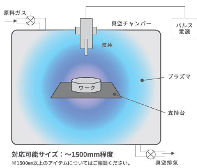装置の中で処理を行ないますが、円筒の内側など影となる部分には成膜できないため注意が必要です。
