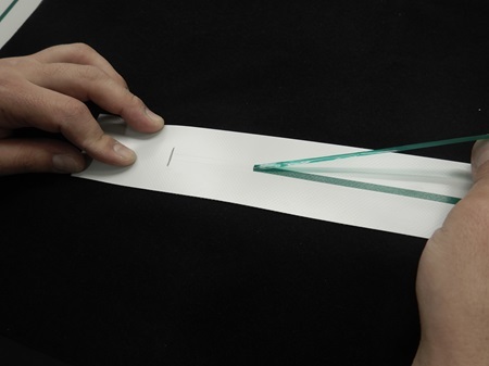 ▼写真③ 【マーキング強度検査OK】 ※加工端部(黒い線)でシートが千切れている