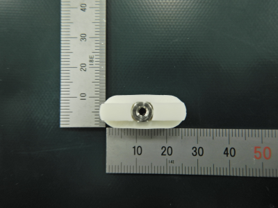 ナットは金属製(SUS)になることから、高周波溶着時にスパークが発生する可能性が高いと考えていましたが、当社の技術部門が専用電極型を設計してスパークが発生しにくい形状で製作を行ったため、問題無く溶着加工を完了させることができました。