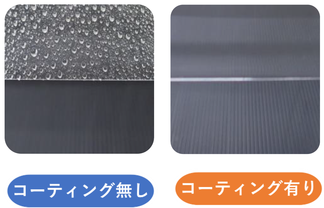 親水グレードのコーティングをしておくと水滴がつきにくくなり、曇りを抑制する効果があります。